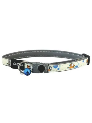 COLLAR FELINE ROGZ BREAK AWAY REFLECTOCAT Adjustable Blue Fish - 3/8in x 8-12in