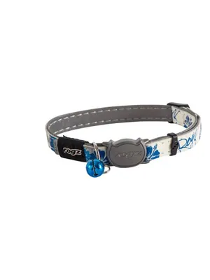 COLLAR FELINE ROGZ BREAK AWAY NIGHTCAT Adjustable Grey/Blue Flower - 3/8in x 8-12in