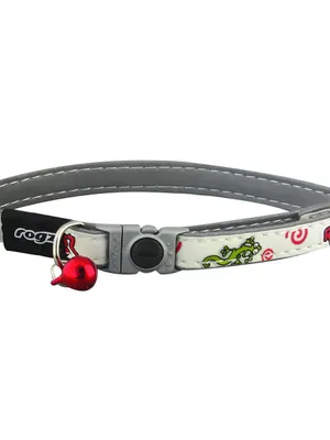 COLLAR FELINE ROGZ BREAK AWAY GLOWCAT Adjustable Beige with Gecko's - 3/8in x 8-12in