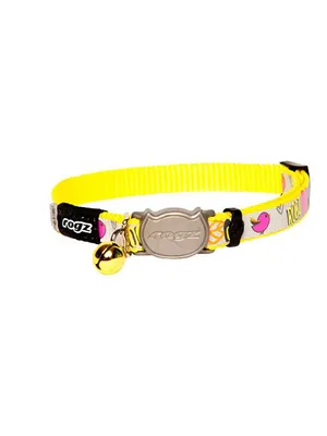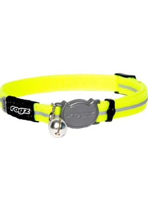 COLLAR FELINE ROGZ BREAK AWAY ALLEYCAT Adjustable Dayglo Yellow - 8-12in