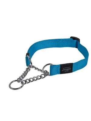COLLAR CANINE ROGZ SNAKE OBEDIENCE HALF CHECK Turquoise - 5/8in x 12-18in