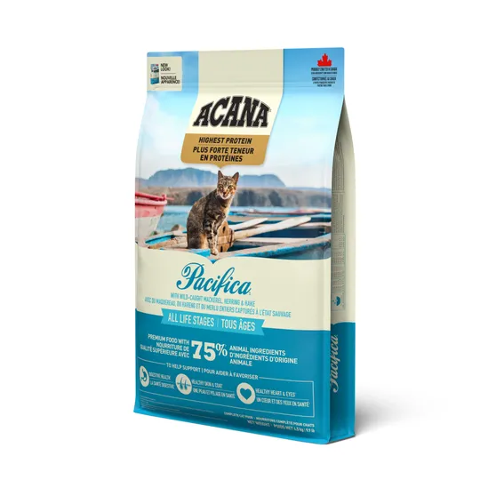 Rich with the highest level of animal protein, our ACANA™ Highest Protein Wild Atlantic Recipe will satisfy your cat completely with its rich fish ingredients and flavour. Crafted with 75% animal ingredients including wild-caught whole mackerel, herring and hake, this recipe provides your cat with a variety of nourishing animal protein. This nutrient-dense recipe also helps support key health benefits including your cat’s digestive health, healthy skin & coat, and healthy heart & eyes. Nurture your feline completely with the rich animal protein and nutrition in ACANA Highest Protein Wild Atlantic Recipe!
