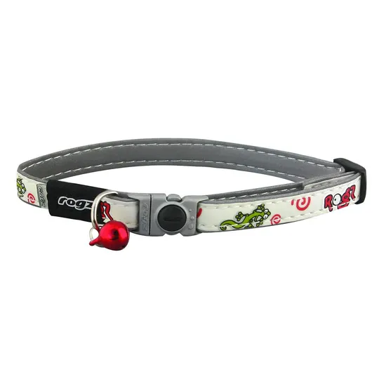 COLLAR FELINE ROGZ BREAK AWAY GLOWCAT Adjustable Beige with Gecko's - 3/8in x 8-12in