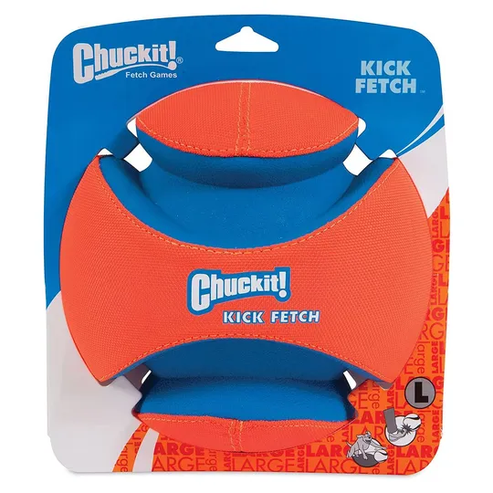 The Chuckit!® Kick Fetch® features deep ridges which make it easier for your dog to retrieve. Kick to play for hours of interactive fun with your dog! Durable canvas, rubber and foam make this dog ball a favorite for outside games.